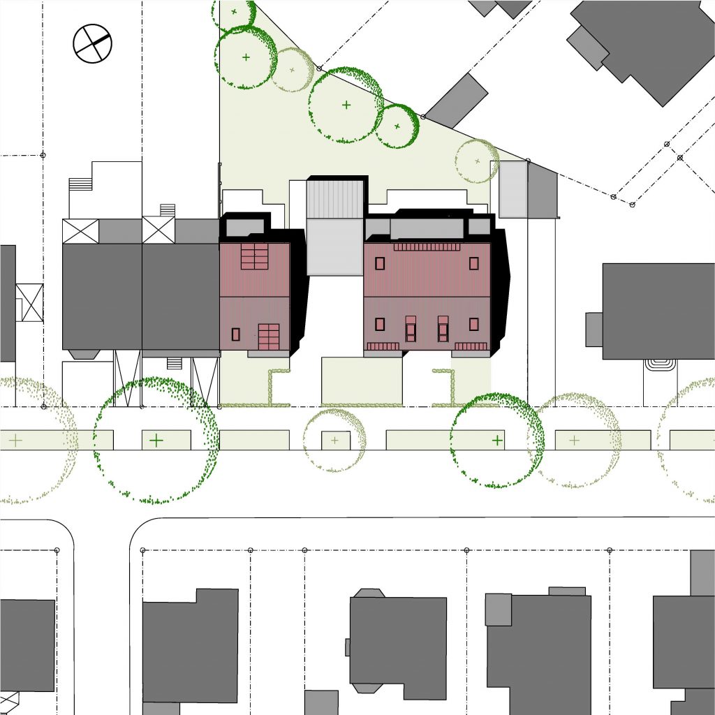 • Neubau des Reihendhauses als Zweifamilienwohnhaus