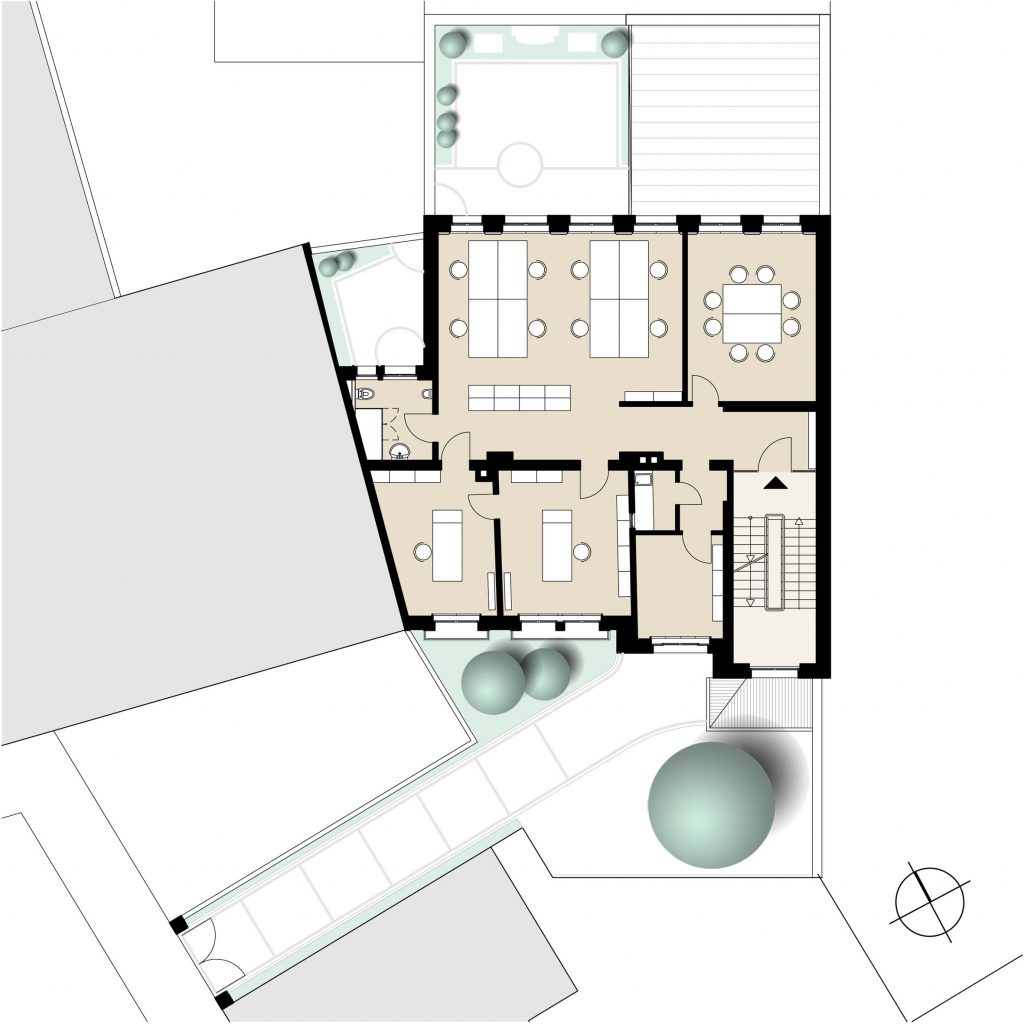 Seit 1991 befinden sich im Gebäude die Räumlichkeiten des Architekturbüros Raus.